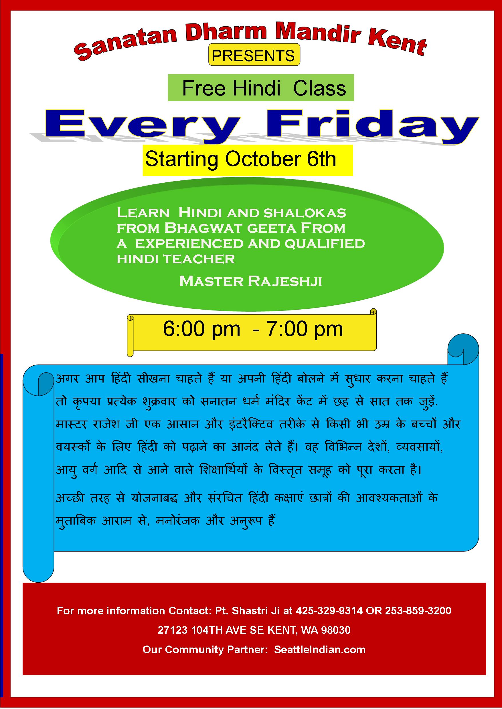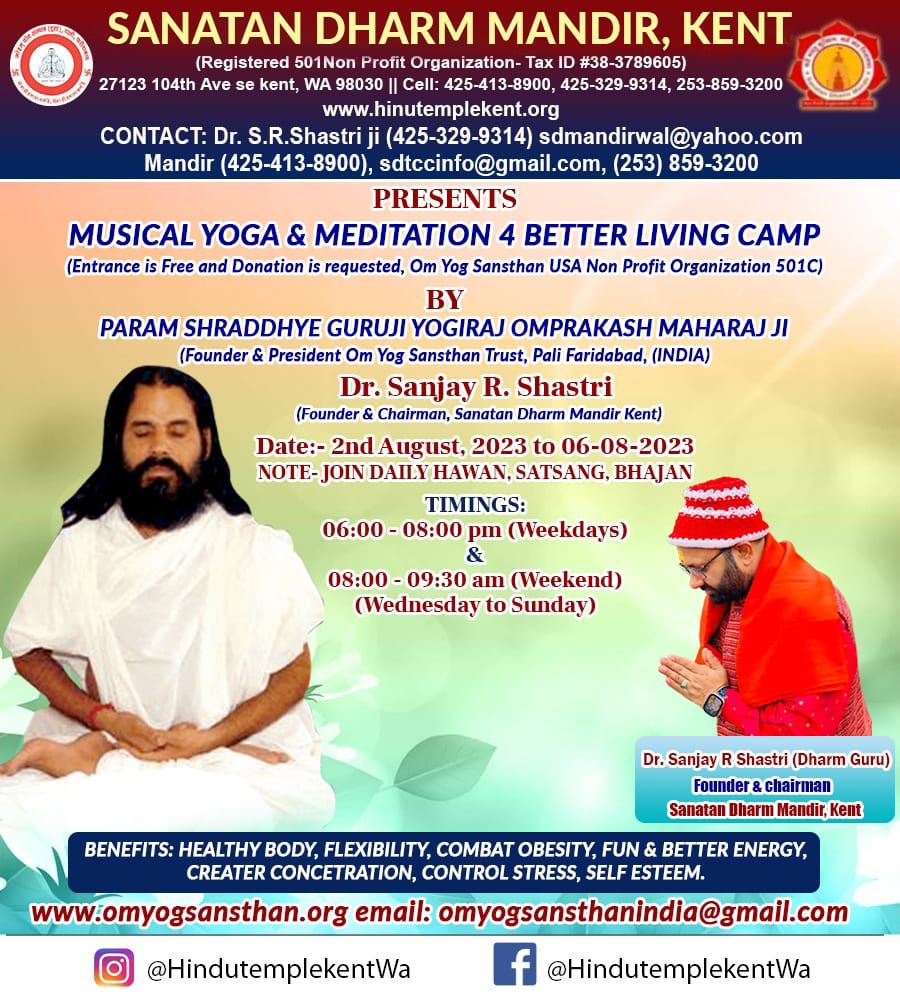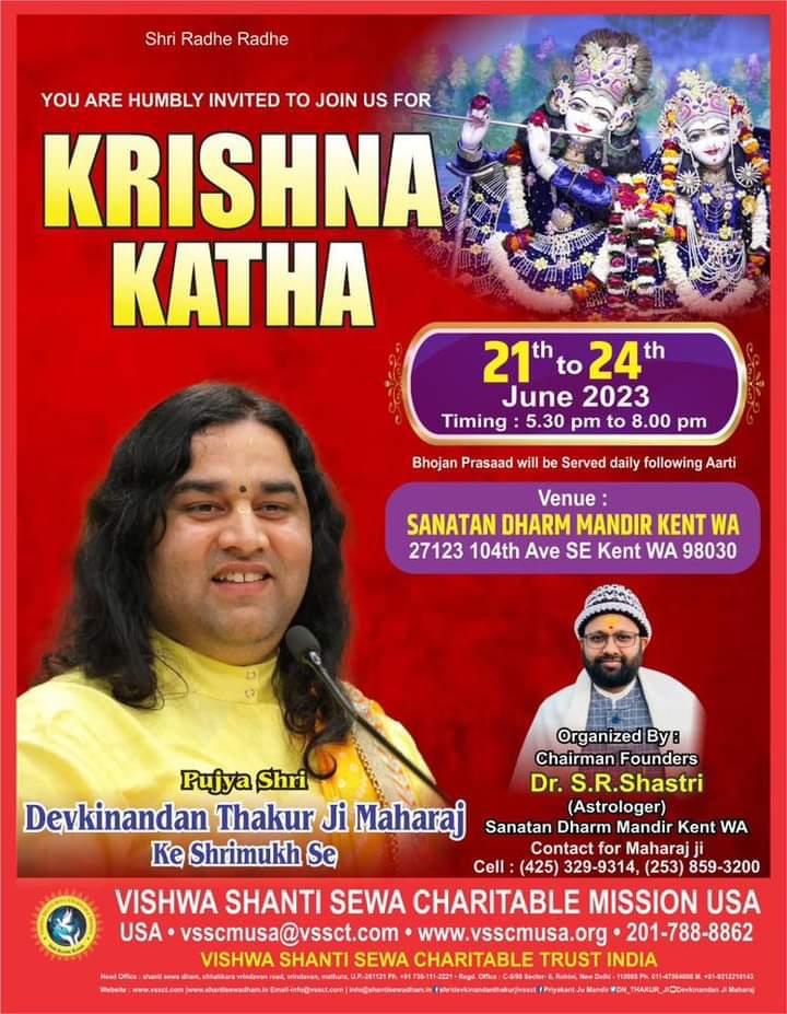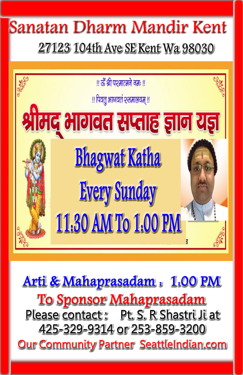 - Sunday – 11:00 AM – 1:00 PM Bhagwad Katha